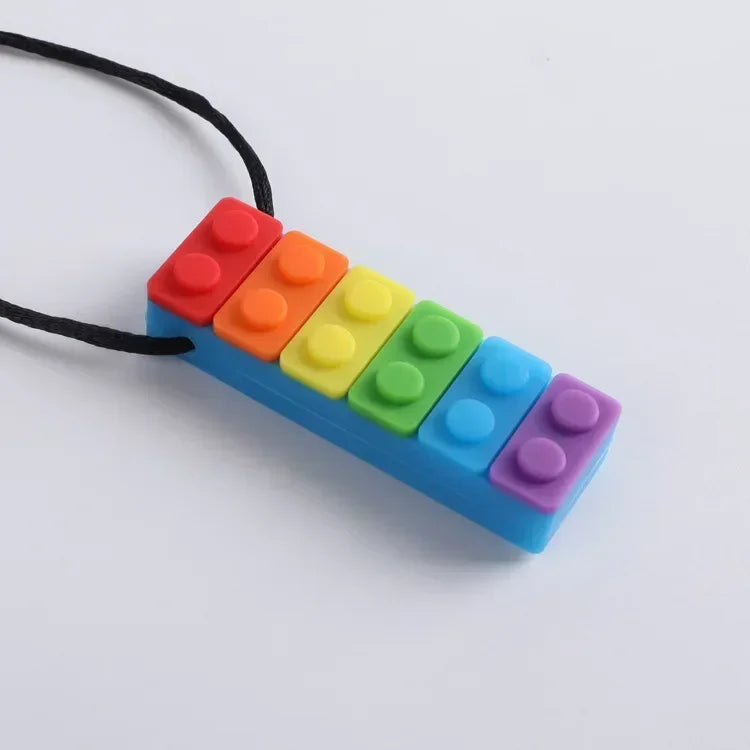 The Sensory Chew Necklace is a safe, stylish, and effective solution for children who need oral stimulation or sensory input. Designed in a fun brick shape and made from food-grade silicone, this chewable pendant is ideal for kids with autism, ADHD, anxiety, or sensory processing disorders. The textured surface provides a satisfying chewing experience that helps soothe stress, improve focus, and reduce nail-biting or clothing-chewing habits. Lightweight and comfortable, it comes with an adjustable breakaway cord for safety, making it perfect for home, school, or travel use. Discreet, durable, and easy to clean, this teether is a must-have for any sensory toolkit.